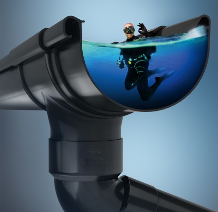 System rynnowy Kanion został zaprojektowany w taki sposób, aby odprowadzać 100% wody deszczowej, zapewniając bezpieczeństwo podczas ulew. Wysoka efektywność odprowadzania deszczówki oznacza też oszczędności – w systemie można wykorzystać mniej rur spustowych, co obniża koszt orynnowania oraz poprawia estetykę budynku. Dodatkową ochroną – przed wychlapywaniem wody na elewację – jest specjalne wywinięcie wewnętrzne rynny.