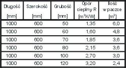 Parametry techniczne: Obciążenie charakterystyczne ciężarem własnym: 0,50 kN/m3