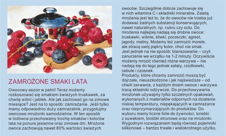 Domowe przetwory przypomną nam w czasie długich, jesiennych i zimowych wieczorów ciepłe letnie dni i słoneczne wakacje. Czerwone truskawki, fioletowe śliwki czy pomarańczowe morele zamieniają się właśnie teraz w pyszne dżemy i konfitury, wiśnie i maliny w energetyczne soki, a czarne porzeczki w jedno i drugie. Do ich przyrządzenia wykorzystajmy kolorowe kuchenne akcesoria – nie tylko ułatwią tę  monotonną pracę, ale „rozweselą” całą kuchnię. Do zrobienia domowych przetworów na pewno przydadzą nam się sita i durszlaki – mycie i dokładne osuszenie owoców przed przetwarzaniem to podstawa. Następnie potrzebne będą wygodne obieraczki i waga kuchenna do odmierzania składników. Oczywiście będziemy potrzebowali przeróżnych mis i garnków. Misy powinny być pojemne, by wygodnie było w nich mieszać i nie gubić owoców. Po co dodatkowy bałagan? Chyba nikt nie lubi niepotrzebnego sprzątania. Podobnie jest z garnkami. Powinny być stabilne i z nienagrzewającymi się uchwytami – smażenie, na przykład konfitur, trwa dosyć długo. Przydadzą się też wygodne łyżki i szpatuły do mieszania. Praktyczne są te silikonowe – nie nagrzewają się i można je myć w zmywarce. Kiedy już nasze dżemy, konfitury i soki będą gotowe, potrzebne się staną szczelne słoiki na przetwory i butelki. Słoiki mogą być stylowe, typu weck lub z zakrętkami „twist”. Butelki mogą być natomiast zamykane na korek na sprężynie. Na koniec przydadzą nam się naklejki, dzięki którym opiszemy co znajduje się w którym pojemniku. I jeszcze jedno – nie zapomnimy o kolorowych fartuszkach i rękawicach kuchennych zabezpieczających przed bolesnym oparzeniem. W końcu w kuchni też możemy wyglądać ładnie.